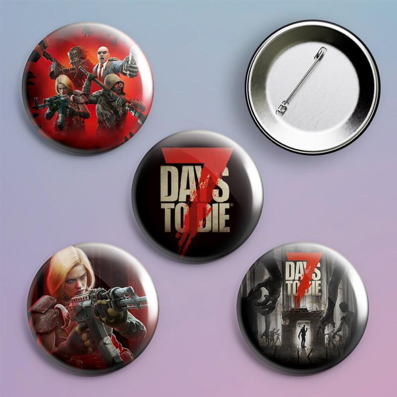 Закатные значки с принтом игры 7 days to die металлические на булавке 56 мм х 4 штуки