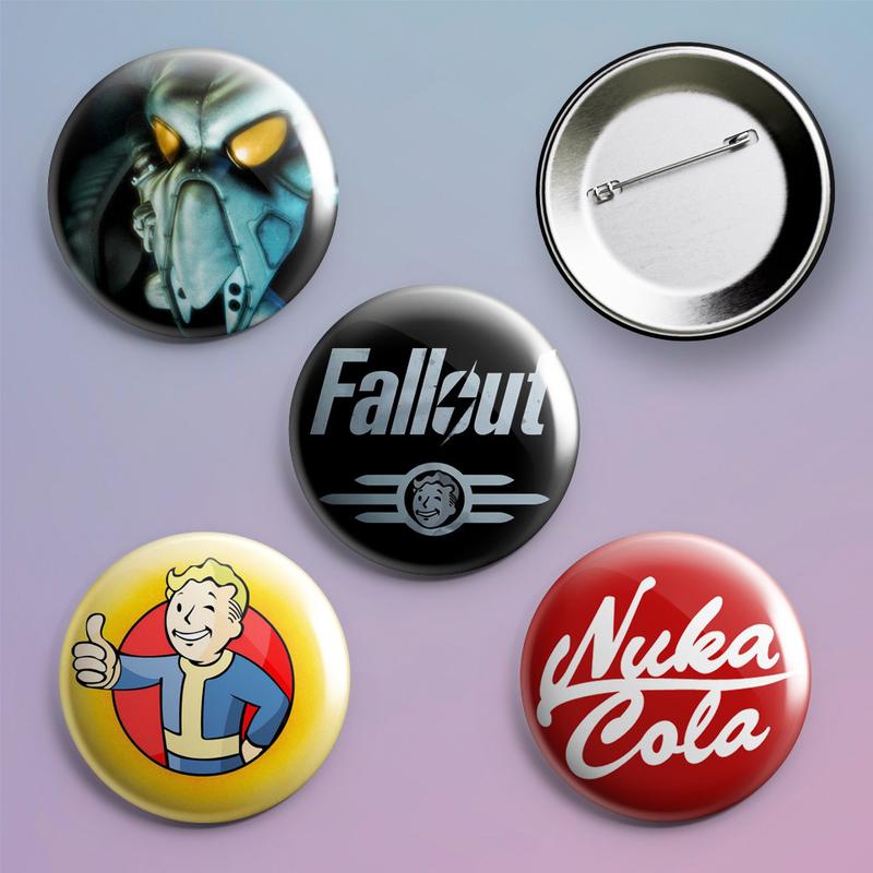 Закатные значки с принтом игры fallout фалаут металлические на булавке 56 мм х 4 штуки
