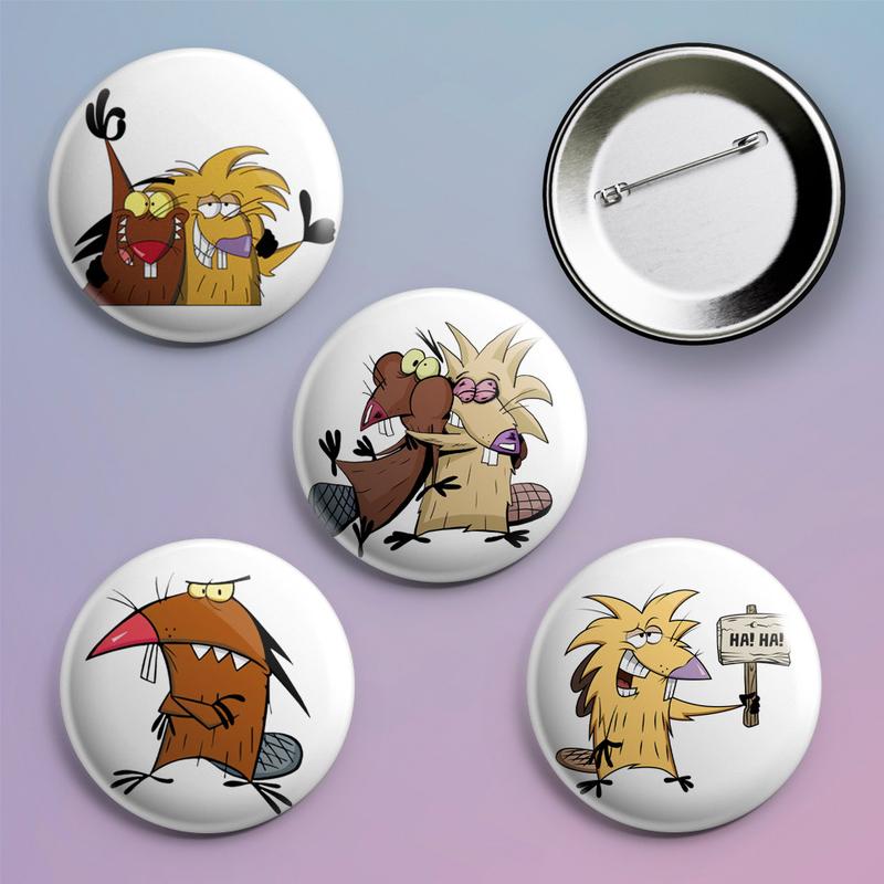 Закатные значки с принтом злюки бобры angry beavers металлические на булавке 56 мм х 4 шту...