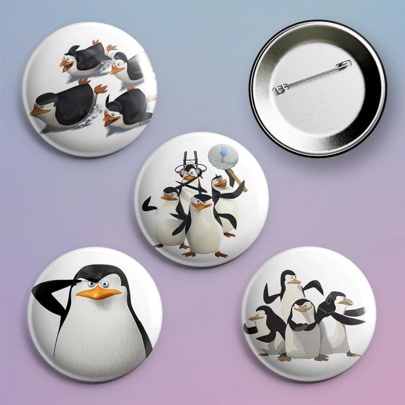 Закатные значки с принтом пингвины мадагаскар металлические на булавке 56 мм х 4 штуки