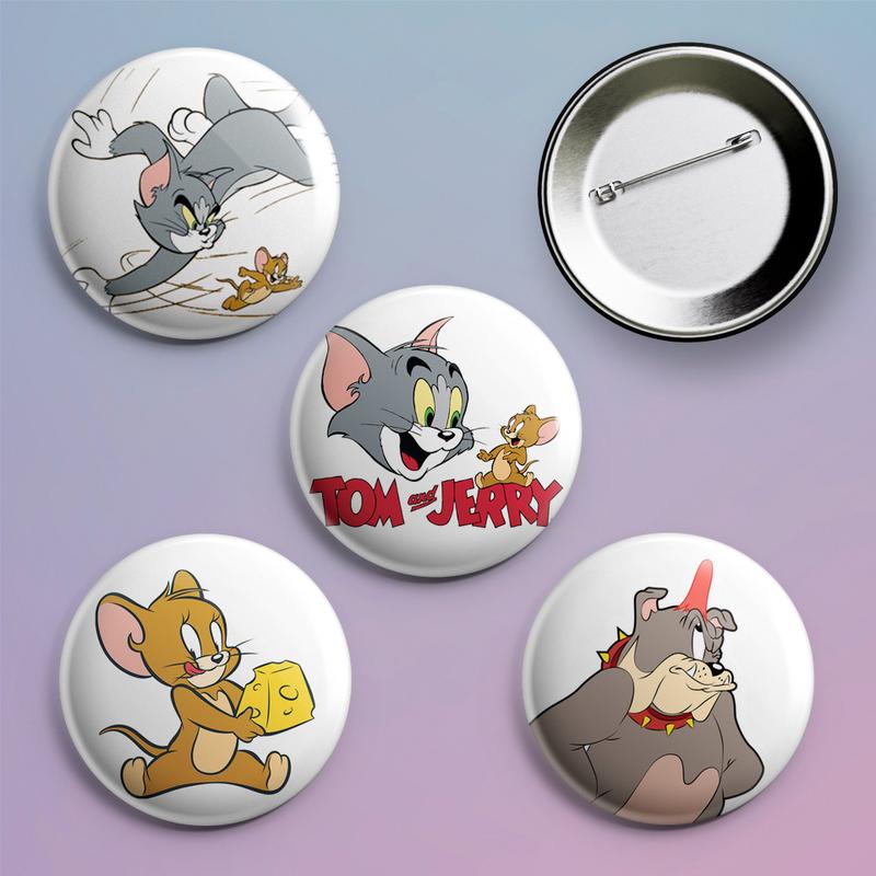 Закатные значки с принтом том и джерри tom and jerry металлические на булавке 56 мм х 4 шт...