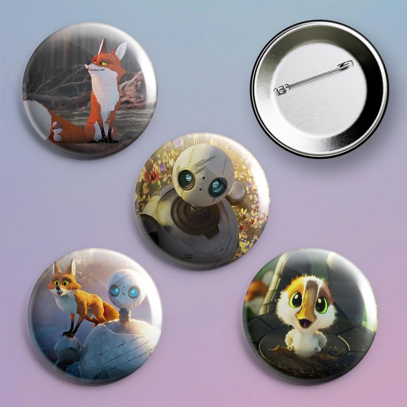 Закатные значки с принтом дикий робот the wild robot металлические на булавке 56 мм х 4 шт...