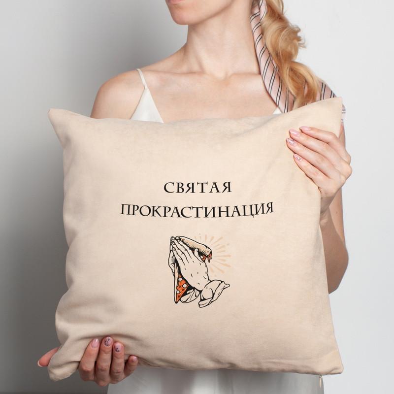 Зачем откладывать на завтра то, что можно сделать послезавтра А может и через годик-два Неизвестно, сколько придется сидеть дома, но известно, что откладывание дел - дело святое. Подушка «Святая прокрастинация» - новый символ каникул, карантинов и веселого 2023 года! Отличный спальный аксессуар, и прикольный подарок для людей с позитивным мышлением.