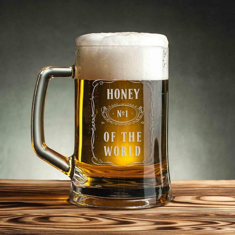 Кружка для пива "№1 of the world" персонализированная с ручкой, английский, крафтовая коро...