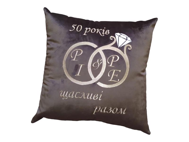 Подушка декоративная c вышивкой коричневый подарок свадебный на годовщину свадьбы Ищете идеальный подарок? Подушка с индивидуальной надписью- это то, что вы искали Размер подушки 38*38 см Пошита из бархата Наволочка зашита наглухо Наполнитель - синтепух Декор - машинная вышивка Уход: сухая чистка/ чистка моющим пылесосом/ деликатная машинная стирка при 30-40 градусах Если нужны: другие инициалы и количество лет/другой цвет ткани/другой цвет вышивки укажите при оформлении заказа в комментариях