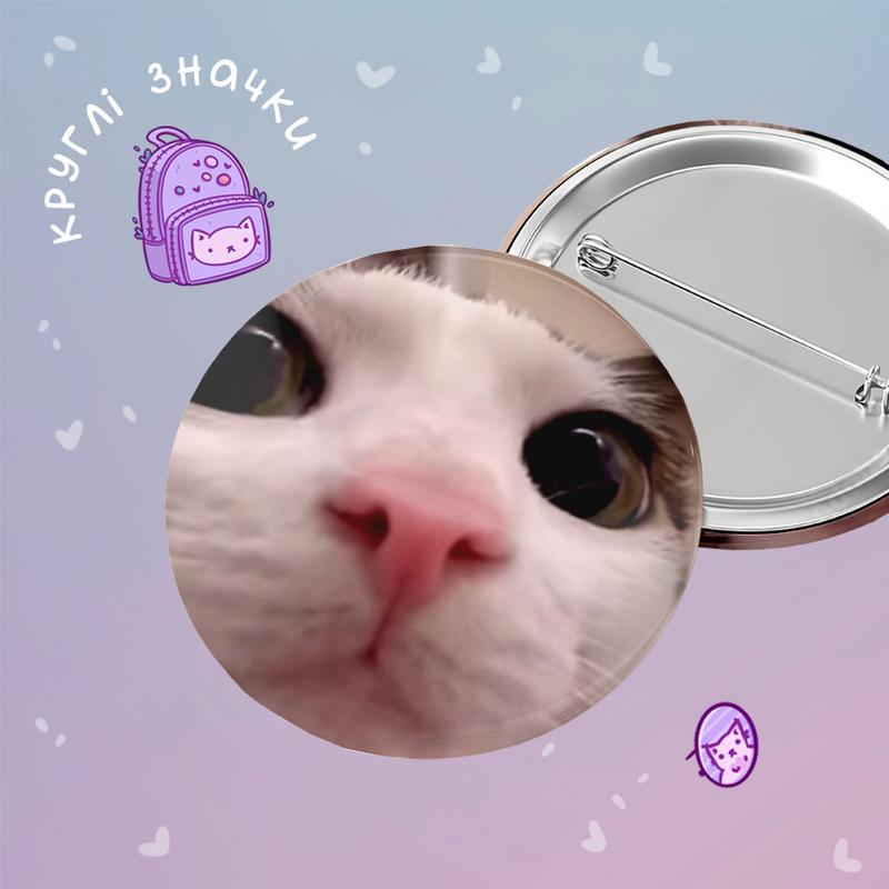 Значок пин на рюкзак милый котик с розовым носиком 56 мм