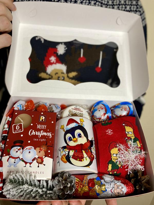 🎄Поиск подарка может быть настоящим испытанием, но мы готовы помочь! 🎄Праздничный набор в стильной подарочной коробке подарит радость и создаст магическую атмосферу. 🎄Заказывайте @*************** и сделайте свои праздники незабываемыми! 🎄Почувствовать зимнюю магию так просто - стоит только выбрать удачный подарок! 🎄Подарочный набор в красивой новогодней коробке станет отличным выбором для близких и подарит праздничное настроение. В состав набора входит: 💫Подарочная коробка (25 см × 17 см × 8 см). 💫Чашка (по выбору). 💫 Носки (размер указываете). 💫Ароматические свечи ***** ********* (6 шт). 💫Конфеты **** Дед Мороз (3 шт). 💫Конфеты ****** **** (3 шт). 💫Медово-имбирный пряник (2 шт). 💫Шоколадные яйца ***** (2 шт). 💫Новогодний декор. 💫Деревянный наполнитель.
