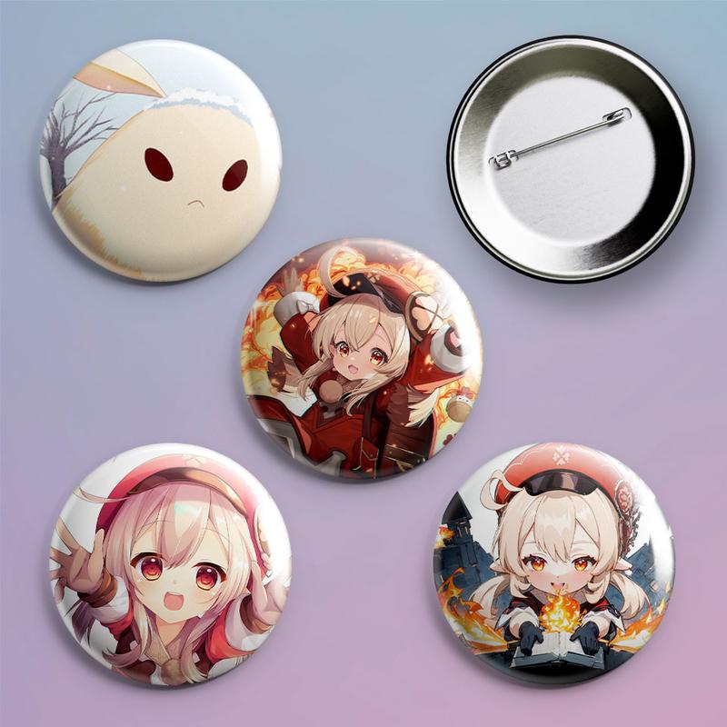 Закатные значки с принтом игры klee кли геншин импакт genshin impact 56 мм х 4 штуки