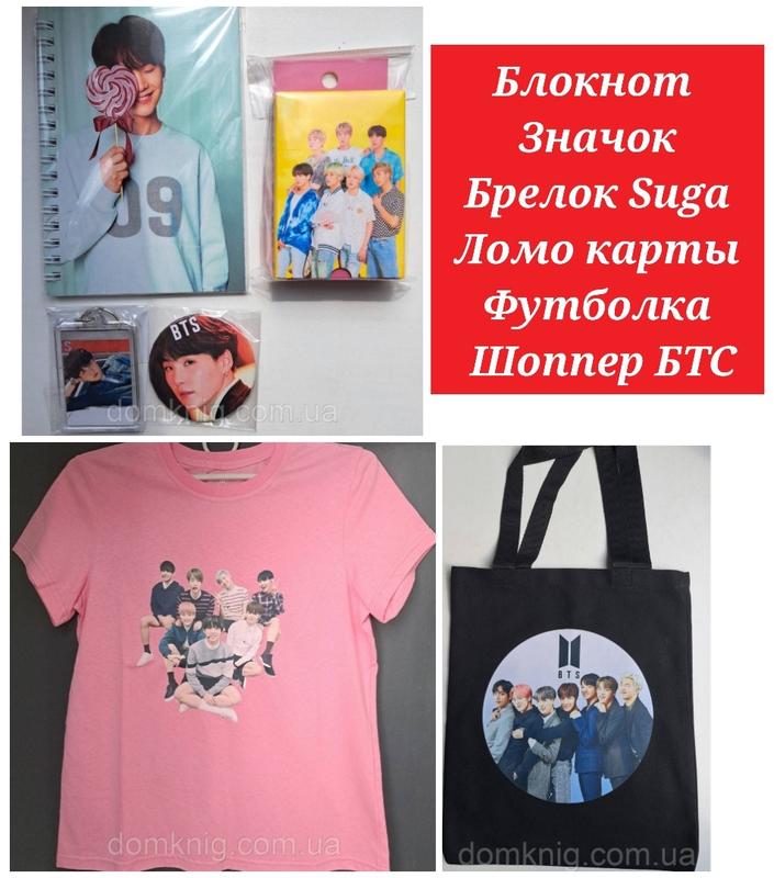 Блокнот + значок + брелок suga (min yoongi) + ломо карты + футболка + шоппер бтс комплект...