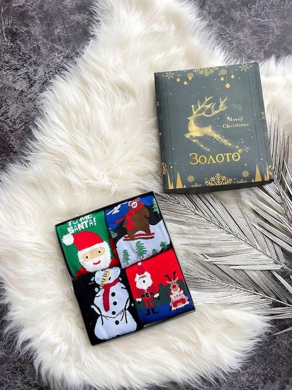 Шкарпетки набором з 4 пар в подарунковій коробочкі + пахучка ялинка Склад: 65% - Хлопок, 30% - Полиєстер, 5% - Спандекс Розмір універсальний чоловічий: 41-46