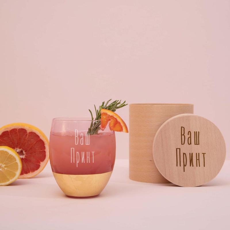 Бокал "конструктор" розовый с золотом персонализированный, тубус из шпона