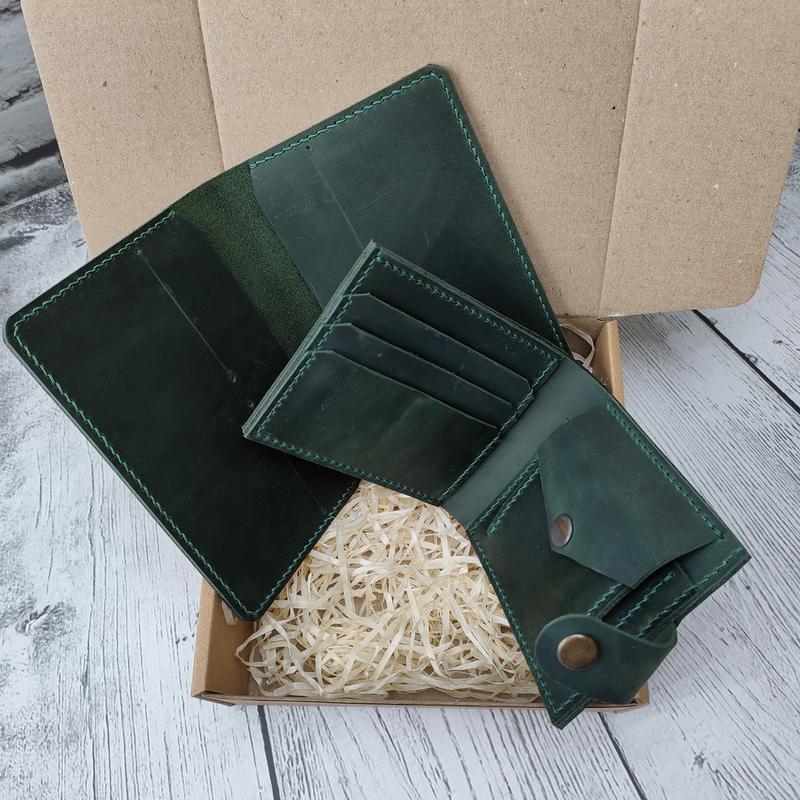 Подарочный набор для особенного мужчины. Вы ищете идеальный подарок для особенного мужчины в вашей жизни? Наши кожаные изделия, созданные вручную с любовью и мастерством, являются олицетворением стиля, качества и утонченности. Этот набор - это не просто подарок, это произведение искусства, которое призвано подчеркнуть индивидуальность и уникальность каждого обладателя. Что включено в набор: 1. Кожаный кошелек: Этот кошелек сделан из высококачественной натуральной кожи, которая со временем становится только красивее. Он имеет удобные отделения для кредитных карт, наличных и документов, а также элегантное место для хранения монет. Подчеркните стиль вашего мужчины с этим кошельком/ 2. Кожаная обложка на паспорт (обложка для документов): Классическая обложка для документов, в отделения под пластиковые карты, или документы размером с банковскую карту. Почему наш набор уникален: - Все изделия изготавливаются вручную мастерами, которые предают им неповторимый характер. - Мы используем только высококачественную натуральную кожу, что обеспечивает долговечность и элегантность каждого изделия. - Наш дизайн отражает современную элегантность и функциональность. Подарите уникальность и стиль своему мужчине. Закажите наш подарочный набор сегодня и увидьте, как его глаза загораются от радости.