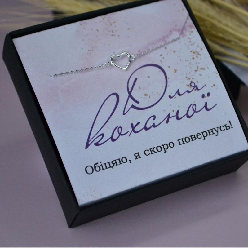Браслет у формі серця - ідеальний подарунок для коханої дівчини. Цей ніжний і стильний аксесуар вражає своєю красою і елегантністю. Кожна деталь браслету уважно продумана, щоб підкреслити жіночність і чуттєвість коханої. Він має гладку поверхню, яка додає йому блиску і привабливості. Серце, яке є центральним елементом браслету, символізує безмежну любов і прив'язаність. Цей браслет стане незабутнім подарунком, який допоможе виразити ваші почуття до коханої. Він підкреслить її унікальність і особливість, стане символом вашої ніжності і турботи. Кожен раз, коли вона носитиме цей браслет, вона буде згадувати про вас і вашу любов. Подарування цього браслету - це не просто акт доброти, але і символ вашого почуття. Він підкреслить ваше ставлення до неї і зробить її щасливою. Завдяки цьому подарунку ви зможете виразити свої почуття і зробити незабутній вечір для неї. В комплекті подарункове упакування та інструкція по догляду за прикрасою. Такий подарунок буде єдиний та унікальний, адже це ручна робота. Відправлення здійснюється кожен день транспортною компанією Нова пошта. Також, за бажанням, Ви можете відправити подарунок анонімно. Доступна оплата при отриманні та на карту. Характеристики • ювелірний сплав металів та родоване покриття 925 проби • ланцюжок16-19 см. • індивідуальні листівка із перламутрового картону • подарункова коробка із високоякісного картону чорного кольору, розмір 8*8*3 см Виконуємо персоналізований текст на листівці. Для цього надішліть Ваш текст і ми підготуємо дизайн майбутньої листівки. Термін виконання індивідуального замовлення 1-2 дні. Текст розміщується на листівці 8*8 см. Вартість персоналізованого дизайну +50 грн до суми замовлення.