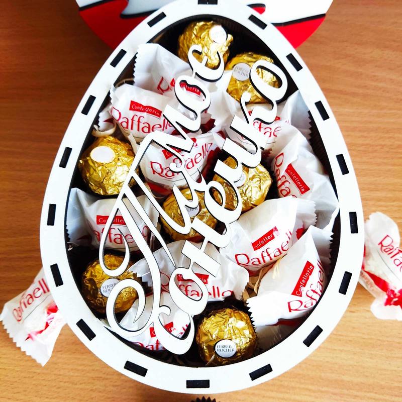 Скажите «Да» очарованию и нежности с нашими подарочными боксами, наполненными сладкими удовольствиями, которые точно покорят сердца ваших близких! День влюбленных, 8 Марта, День рождения, Новый год, И много других особенных моментов в жизни! В состав входит: 🎁 Коробка - Конфеты Raffaello 10 шт - Конфеты Ferrero 7 шт - Топер на выбор - Наполнитель - стружка 🎁 Размер коробочки: 22-17-7 Наши подарки - лучший способ выразить свои чувства