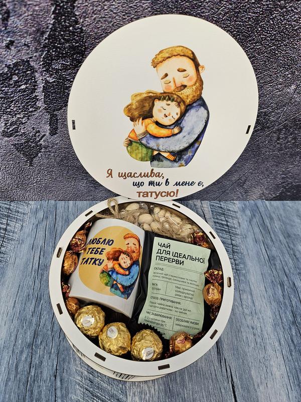 Всем дочерям на заметку📝 Уже через несколько дней день папы🤠 Айда в Директ📩, чтобы выбрать подарок 😉 И в этой публикации вариант подарка именно от дочери Состав 👇 ▫️чашка 330мл; ▫️чай для идеального перерыва 50г; ▫️ферреро рошер 3шт; ▫️фисташки 50г; ▫️соленый арахис 50г; ▫️конфеты coffeelike 6шт; ▫️подарочный деревянный наполнитель; ▫️коробка 20см🔄×8см⬆️; 💸750грн💸 В боксе можно сменить чай на кофе, поставить чашку с другим рисунком, сменить орехи или коробку для Татуся😎 ✅️Все для вашего удобства✅️ Наполнение, которое точно понравится папе и станет бюджетным вариантом оригинального подарка.