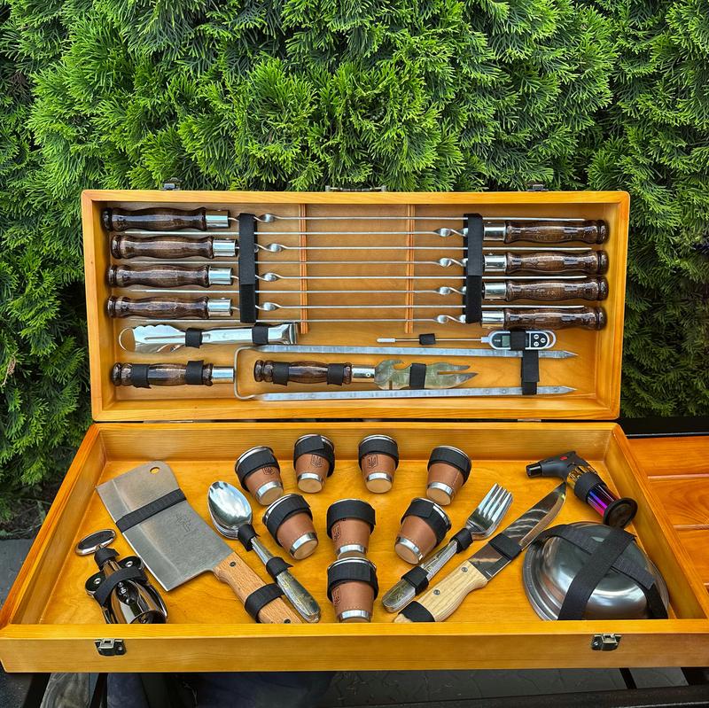 Подарунковий набір шампурів магнат ручної роботи світлий кейс