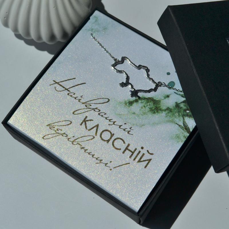 Це особливе кольє у формі контурів України - символ гордості, патріотизму та єдності. Виготовлене з високоякісного матеріалу, 925 проби, що робить його витонченим та стильним аксесуаром. Кольє підходить як для повсякденного носіння, так і для урочистих подій. Воно чудово підкреслить зв'язок із рідною країною та стане нагадуванням про силу та красу України. Такий подарунок має не лише естетичну цінність, але й глибокий сенс, адже нагадує про важливість підтримки, єднання та любові до Батьківщини. Характеристики • біжутерний сплав металів класу LUX, посріблене покриття, гарантія 3 роки • ланцюжок 40-45 см. • індивідуальні листівка із перламутрового картону • подарункова коробка із високоякісного картону чорного кольору, розмір 8*8*3 см Оригінальний та незвичний подарунок точно запам'ятається. Кольє виготовлене із ювелірного сплаву та покрите родієм. Не чорніє, зберігає вигляд та не залишає сліди. Гарантія 3 роки. В комплекті подарункове упакування та інструкція по догляду за прикрасою. Такий подарунок буде єдиний та унікальний, адже це ручна робота. Відправлення здійснюється кожен день транспортною компанією Нова пошта. Також, за бажанням, Ви можете відправити подарунок анонімно. Доступна оплата при отриманні та на карту. Виконуємо персоналізований текст на листівці. Для цього надішліть Ваш текст і ми підготуємо дизайн майбутньої листівки. Термін виконання індивідуального замовлення 1-2 дні. Текст розміщується на листівці 8*8 см. Вартість персоналізованого дизайну +50 грн до суми замовлення.