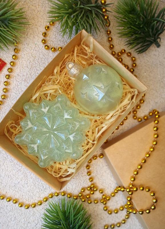Набор мыла ручной работы "Ледяная сказка" Погрузитесь в зимнее очарование вместе с нашим уникальным набором мыла "Крыжная сказка". У комплекті: Снежинка (91 г) – изящная форма и нежное мерцание создают атмосферу заснеженной зимы. Елочная игрушка (49 г) – праздничный акцент, дарящий радость и тепло праздников. Общий вес мыла в наборе 140 грамм Мыло выполнено в прозрачных оттенках с легкой синевой и магическим сиянием блесток, что придает им особый шарм. Каждый элемент красиво упакован в подарочную коробочку, идеально подходящий для подарка близким или украшения вашей ванной комнаты. 🌟 Ручная работа 🌟 Натуральные компоненты 🌟 Эстетика и забота о вашей коже Пусть "Крыжная сказка" станет вашим зимним вдохновением!