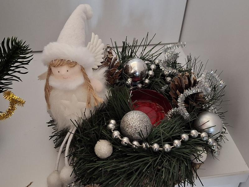 Подсвечник на стол декорирован,ангеликом, и игрушками