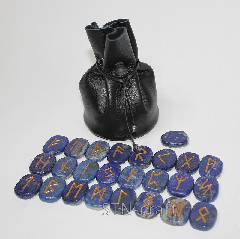 Руны резные природный лазурит, форма – округлый натуральный. Ручная работа, резьба, прокраска. В набор входят: - 24 руны старшего футарка, - пустой камень, - описание значения рун, - в качестве подарка в набор входит мешочек из натуральной кожи (диаметр основания – 80 мм, высота – 130 мм). Форма камня – прямоугольник со скруглёнными углами. Размер рун (в среднем): 24х29 мм. Изящный художественный набор для использования в магических и мантических практиках. Руны изготовлены из полированного натурального лазурита. Этот камень обладает способностью наделять владельца удачей и благополучием, что способствует получению желаемого результата в практике рун. Наполняет вас силой для достижения поставленной цели и позволяет принять верное решение в любой ситуации. Изображения рун классически вырезаны в камне и прокрашены крафтовой ювелирной краской на основе эпоксидной смолы с натуральным золотистым наполнителем из мелкодисперсного порошка бронзы. Возможно изготовление индивидуального набора рун схожего типа на каменной основе с прокраской символов любым цветом по желанию заказчика. Срок изготовления набора под заказ – около 10 дней.