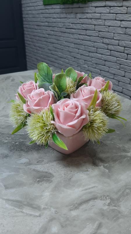очень красивая и ароматная композиция в корзине в форме сердца из троя, выполненные из мыла. этот букет будет украшением в любимом помещении, аромат будет напоминать о розовом саду. в наличии
