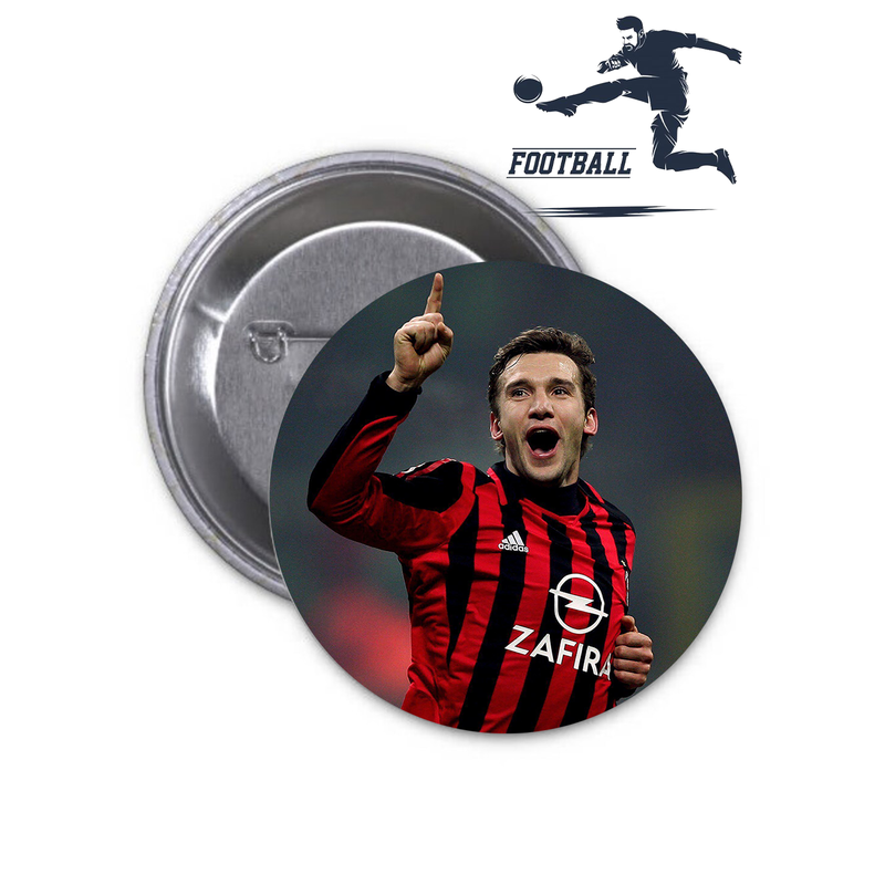 Значок Andriy Shevchenko | Андрей Шевченко Можно прицепить на рюкзак, сумку и так далее. Диаметр круглого значка 58мм Принимаем заказы с вашими рисунками. Изготавливаем значки, магниты, скетчбуки, тетради, плакаты, брелоки, карты ламинированы...