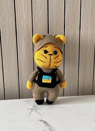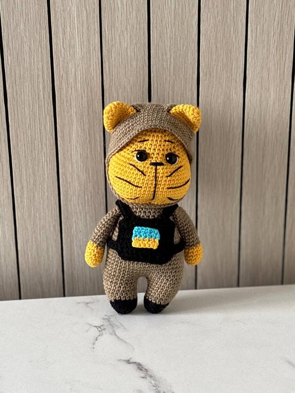 Катусь связан из пряжи Джинс. Рост игрушки-20 см Амуниция на теле не снимается. Каска- шалом снимается. Красивый подарок для военного.