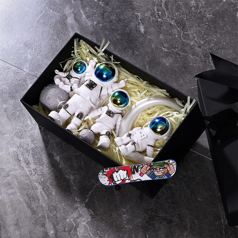 Опис Представляємо вашій увазі набір фігурок космонавтів, який декорований в подарунковій коробці, яка не потребує додаткової упаковки. Статуетки космонавтів виготовлені із полірезини, яка безпечна для дітей та дорослих. Вони мають яскраві кольори, які не стираються з часом. Набір космонавтів – це ідеальний подарунок для вашої дитини незалежно від статі та віку, який стане ідеальною прикрасою для дитячої кімнати, інтер'єру та офісу. Дозвольте собі або вашій дитині поринути в незабутню атмосферу Зоряного космосу і Галактики, вирушити в подорож Зоряним небом у компанії з нашими комановтами. Яскравий та незабутній настрій вам гарантований. Даний набір космонавтів буде чудовим, оригінальним та приємним подарунком для всіх та з будь-якого приводу! Вага фігурок від 40 до 75 грам Матеріал - полірезин. Розмір фігурок: 8см 2шт 9см 10см