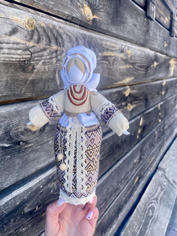 Берегиня — це особливий тип ляльки-мотанки, яка символізує захисницю дому та родини. Її ім'я походить від слова «берегти», і вона вважається головною хранителькою домашнього затишку, добробуту і гармонії. . Висота: 21-22 см