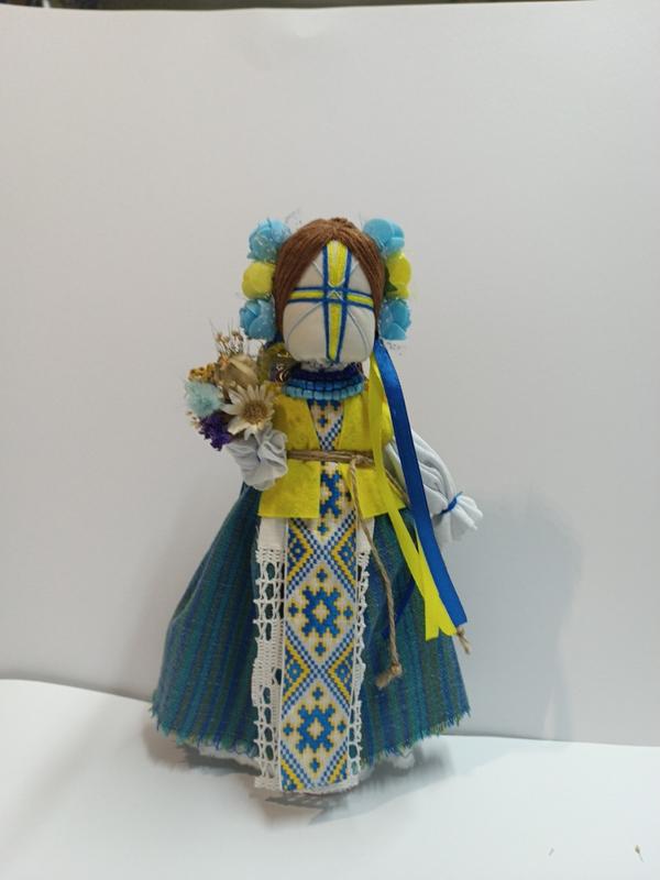 Кукла ручной работы высота 24-25см отверстия из натуральной ткани лен и хлопок венок из искусственных цветов а букет сухо цвета
