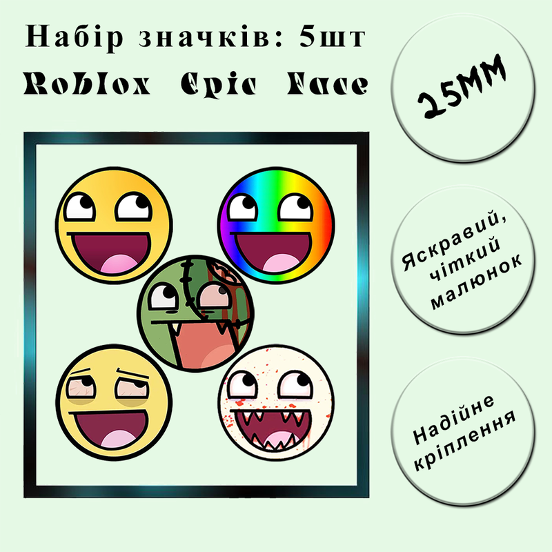 Набор значков 5шт 25мм epic face эпик фейс roblox роблокс smile смайл