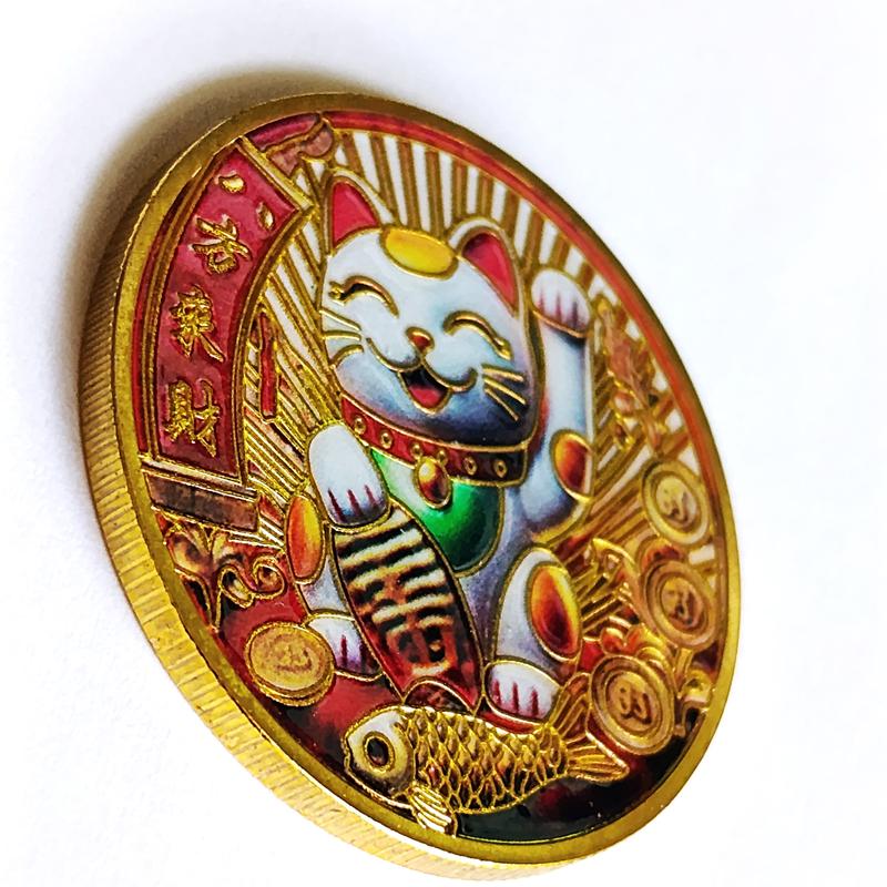 Цвет монет: золотой. Диаметр: 4 см. Это отличный подарок для всех, это и амулет, и талисман и даже оберегаю, глядя, как цель вкладывает в эту вещь силы! Монета имеет две стороны с разными изображениями. Кот Манеки-неко - это не просто декоративный элемент, а символ удачи, процветания и защиты. Его история, переплетенная с народными легендами, делает его не только популярным талисманом в Японии, но и в других странах. Манеки-неко (яп. 招き猫, буквально «Приглашает кот», «Манячий кот», «Кот кошки»; также известный как «Кот счастья», «Гороший кот» или «Кот удачи») — распространенная японская фигурка, которая приносит ее владельцу удачу. Поднятая правой лапе кошка привлекает деньги, удачу, а подняла левую лапу — клиентов. Встречаются также «манеки-неко» с двумя поднятыми лапами. Счастливая кошка с приподнятыми обеими руками приносит и богатство, и клиентов. Золотой манеки-неко — связанный с богатством, приносит удачу в бизнесе. Черный манеки-неко – защита от отрицательной энергии. Красный манеки-неко — решительность и защита от несчастных случаев. Зеленый манеки-неко - приносит удачу в обучении.
