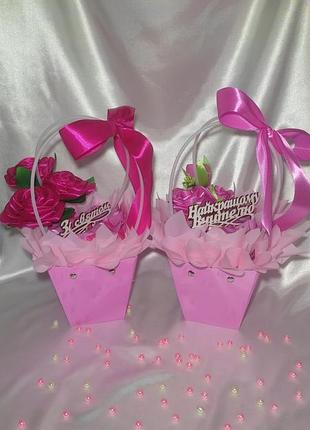 Композиції до любого свята. Квіти з атласної стрічки та цукерок.