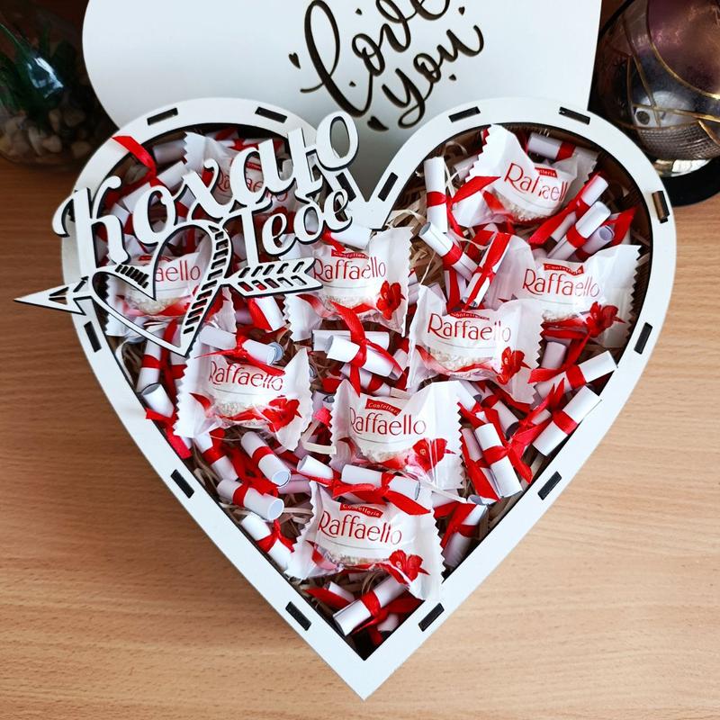 Скажите "Да" очарования и нежности с нашими подарочными наборами, наполненными сладкими удовольствиями, которые точно покорят сердца ваших близких! День влюбленных, 8 Марта, День рождения, Новый год, И многие другие особенные моменты в жизни! В склад входить: 101 причина, по которой я тебя люблю Цукерки Raffaello 9 шт Наполнитель - стружка Топпер на выбор 🎁 Размер коробочки: 28 *27 *8 см Наши подарки - лучший способ выразить свои чувства