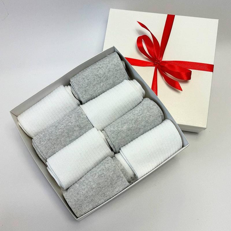 Бокс жіночих шкарпеток в рубчик 36-41 р на 8 пар в подарунковій коробці із стрічкою |easyp...