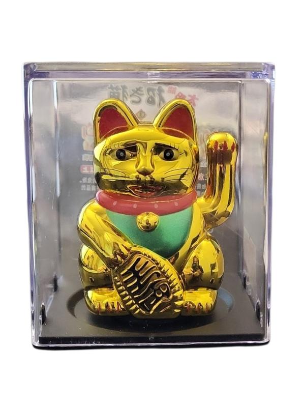 Статуэтка Фен-Шуй Манэки Нэко на солнечной батарее махает лапой (кот счастья,денежный кот) цвет: золотой высота: 5 см