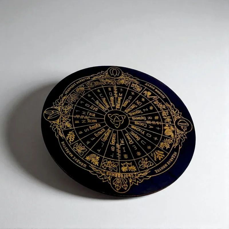 Рунический алтарь огам (друидов, кельтский) из дерева, (27х27х0,8 см), покрытый эмалью.