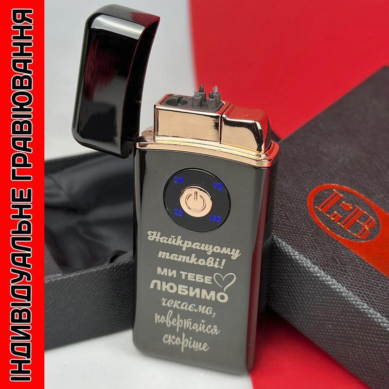 Зажигалка для папы, зажигалка з индивидуальной гравировкой 2 в 1 газовая и электрическая