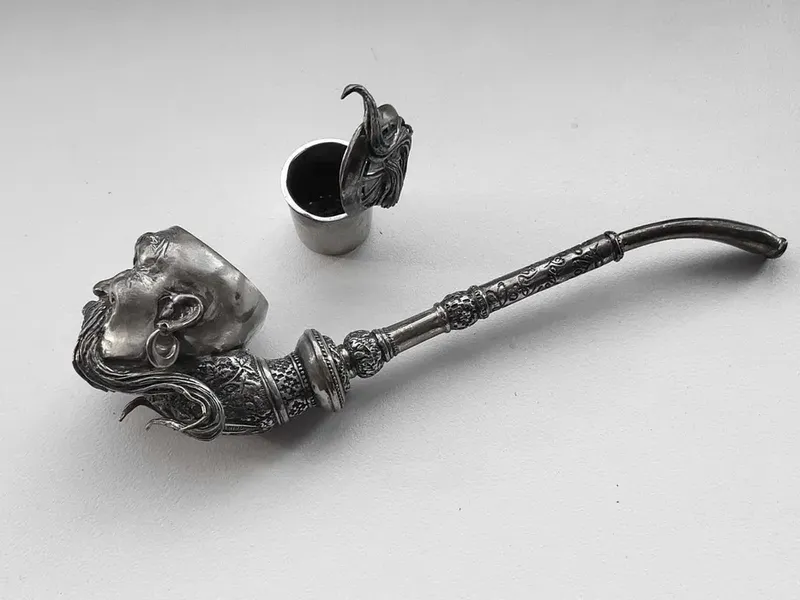 Козацька люлька Матеріал - срібло. Зйомний мундштук Всередині срібний фільтр Довжина 15 см.