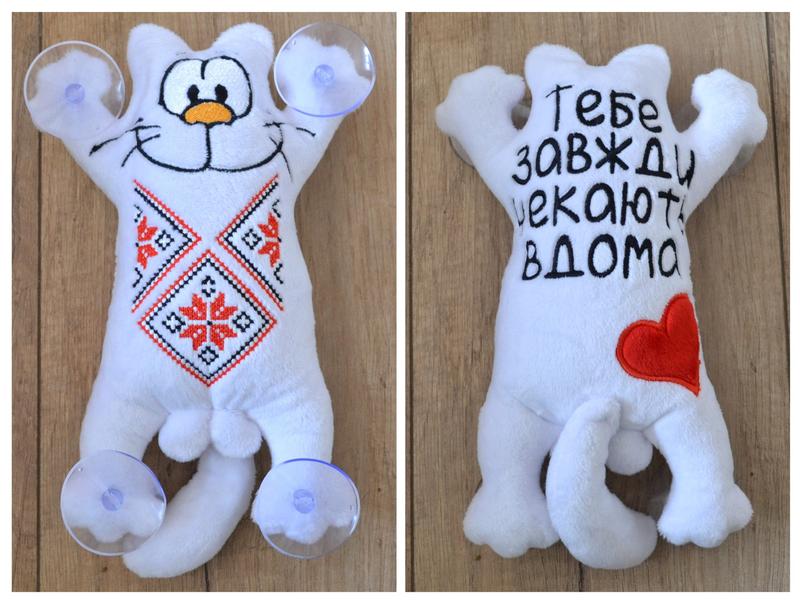 Кіт саймон на присосках вишиванка белый 26 см плюш