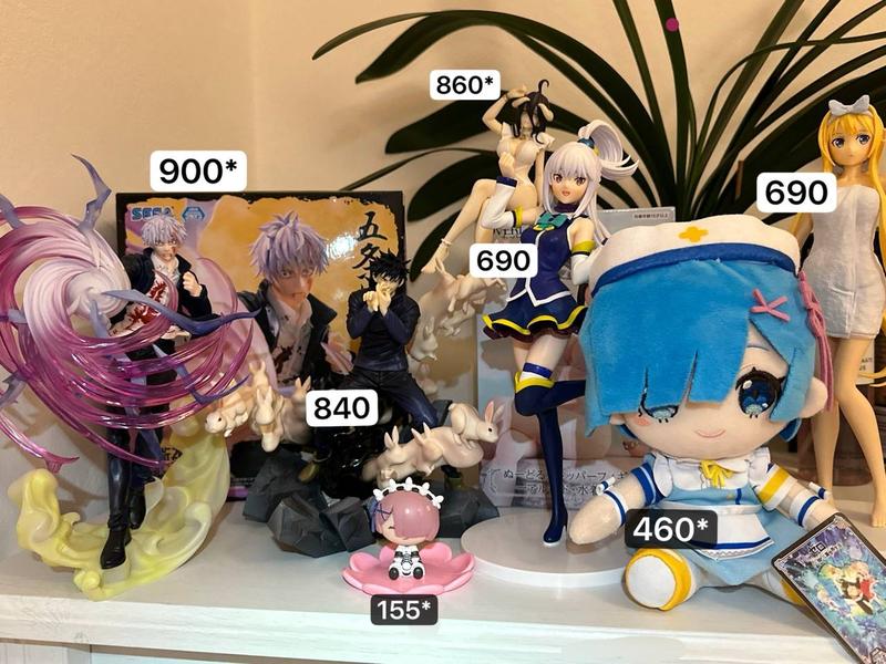 ціни на фото, зірочкою позначені фігурки з коробками (сатору і альбедо) в ідеальному стані решта фігурок в гарному стані, додаткові фото за потреби в пп! ❤️ всі фігурки з особистої колекції, привезені з Японії • плюш рем медсестра в ідеальному стані з біркою • міні рам нова в плівці (на фото з моєї колекції, на продаж ще одна така сама запакована) більше фото з радістю в пп 🫶 дякую за увагу! ⭐