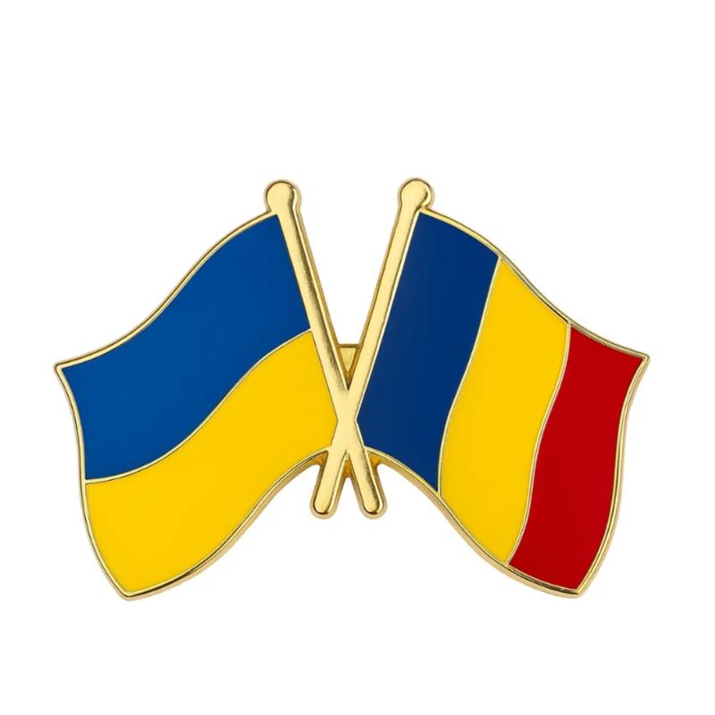 Двойной значок-пин с флагами украины и румунии / friendship flag украинская румуния