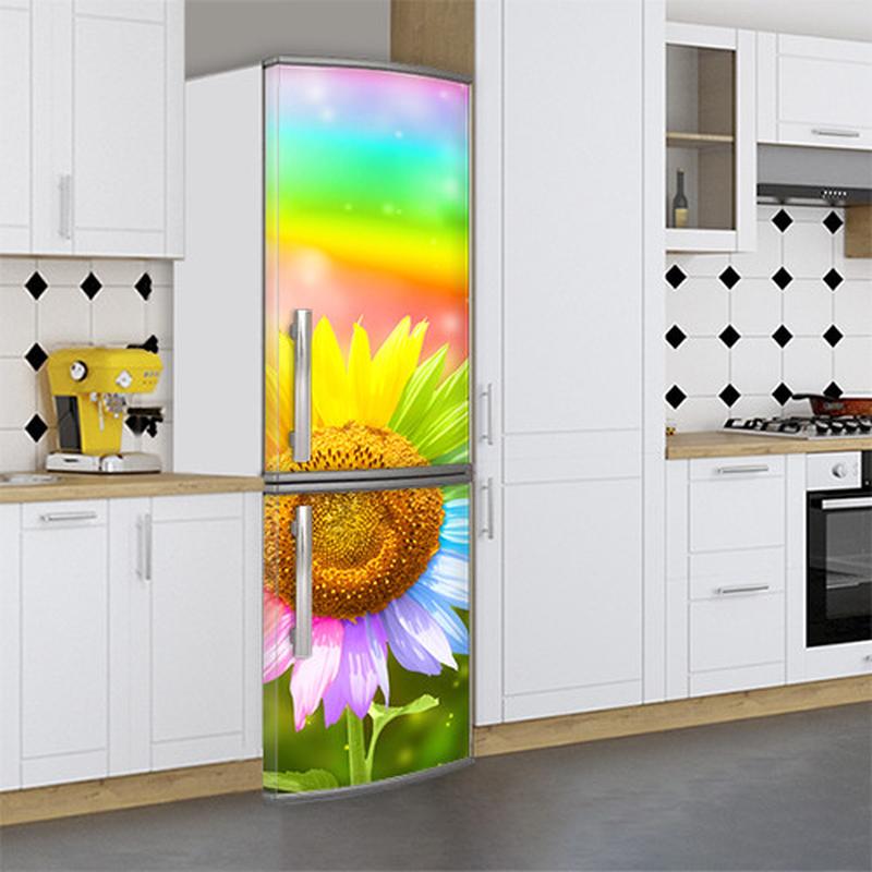 Самофиксирующаяся наклейка на холодильник магнитная с подсолнухом 180 х 60 см, лицевая