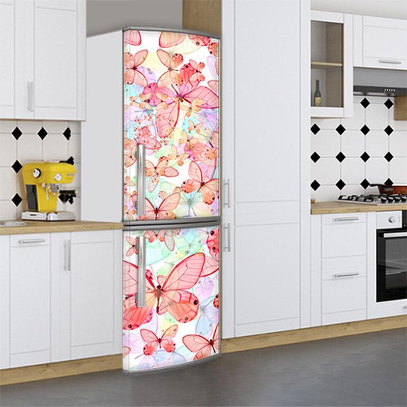 Самофиксирующаяся наклейка на холодильник магнитная с бабочками порхающими 180 х 60 см, ли...