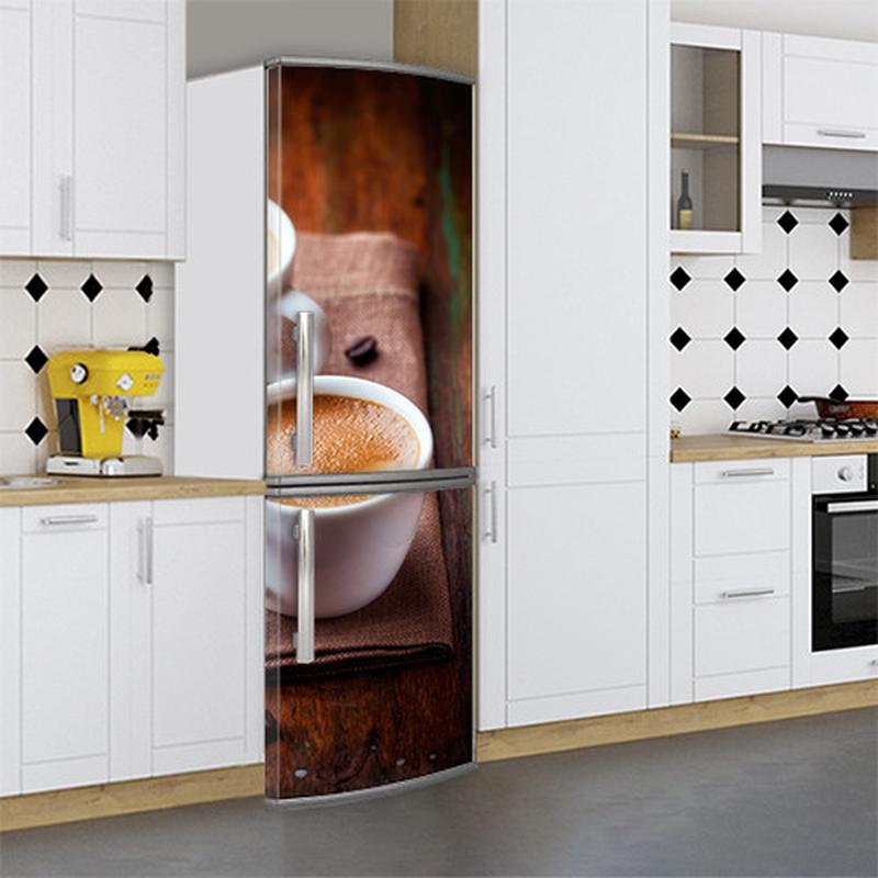Самофиксирующаяся наклейка на холодильник магнитная с чашкой кофе 180 х 60 см, лицевая