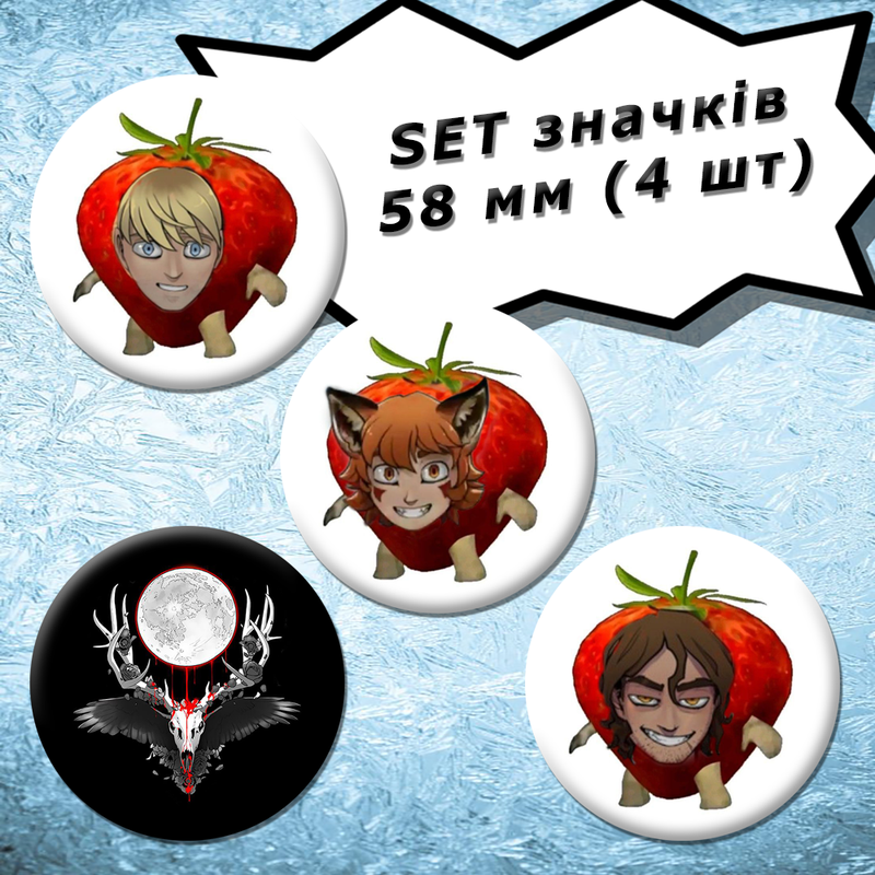 Комплект из 4-х значков (58 мм) boyfriend to death | бойфренд до труни Яркие значки для фанатов игры – отлично смотрятся на рюкзаке, сумке, одежде или пенале. Диаметр каждого значка – 58 мм. Принимаем заказы с вашими изображениями или дизайнами. Также изготавливаем: значки, магниты, чашки, скетчбуки, тетради, платья, брелки и ламинированные карточки.