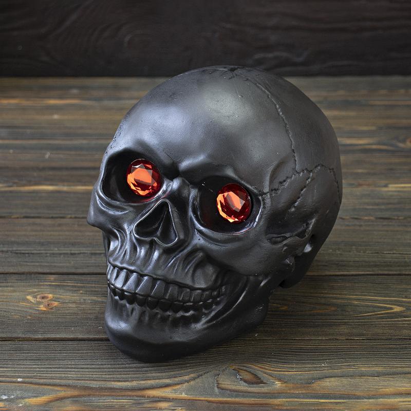 Череп копилка Мистик M 13790 (черный) - необычная копилка в форме черепа, оригинальный подарок на Хэллоуин. Особенно необычно и эффектно в копилке смотрятся естественные швы на стыке костей черепной коробки и белоснежные зубы. Череп полый внутри, так как это копилка. В верхней части на затылке имеется отверстие для монет. Прямые поставки оригинальных копилок для Вашего магазина по лучшим ценам от интернет магазина Карнавал Приколов.