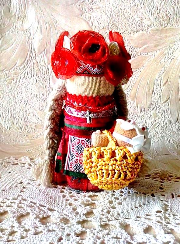 Авторская украинская кукла, символизирует нарядную молодую девушку, которая может собраться в школу на большой день, держит крупной корзинки с ремнем. высота 14-15 см. выготавливается по заказу за 3-5 дней.