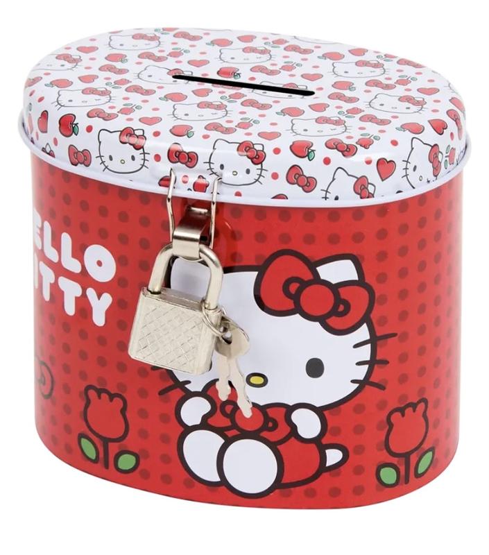 Скарбничка металева Hello Kitty на замку Розмір: 10 x 6,5 x 9 см