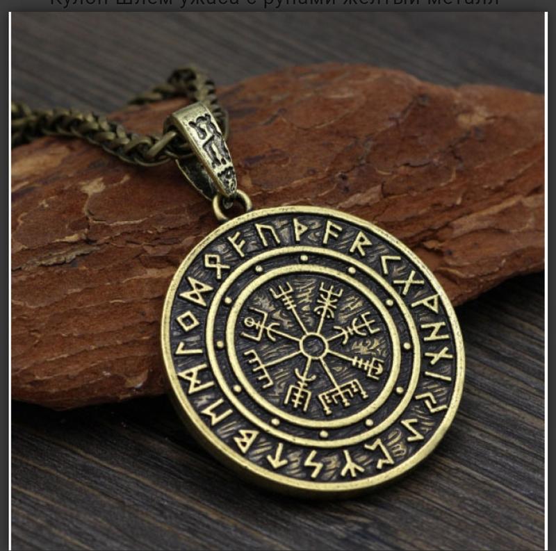 Кулон шлем ужаса с рунами желтый металл обладает мощной защитной силой, способной наводить...